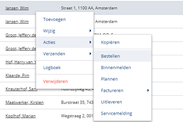 Stap 2: Kies vervolgens "Acties –-> Bestellen"