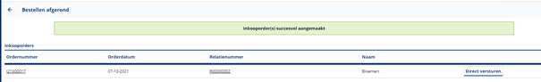 Stap 4: De inkooporder(s) is nu gegenereerd. Je kunt er voor kiezen om deze direct te versturen door op de knop versturen te klikken.