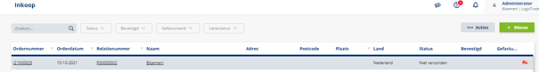 Stap 6: Je kunt de zojuist aangemaakte inkooporder terugvinden bij de module "Inkoop --> Orders"
