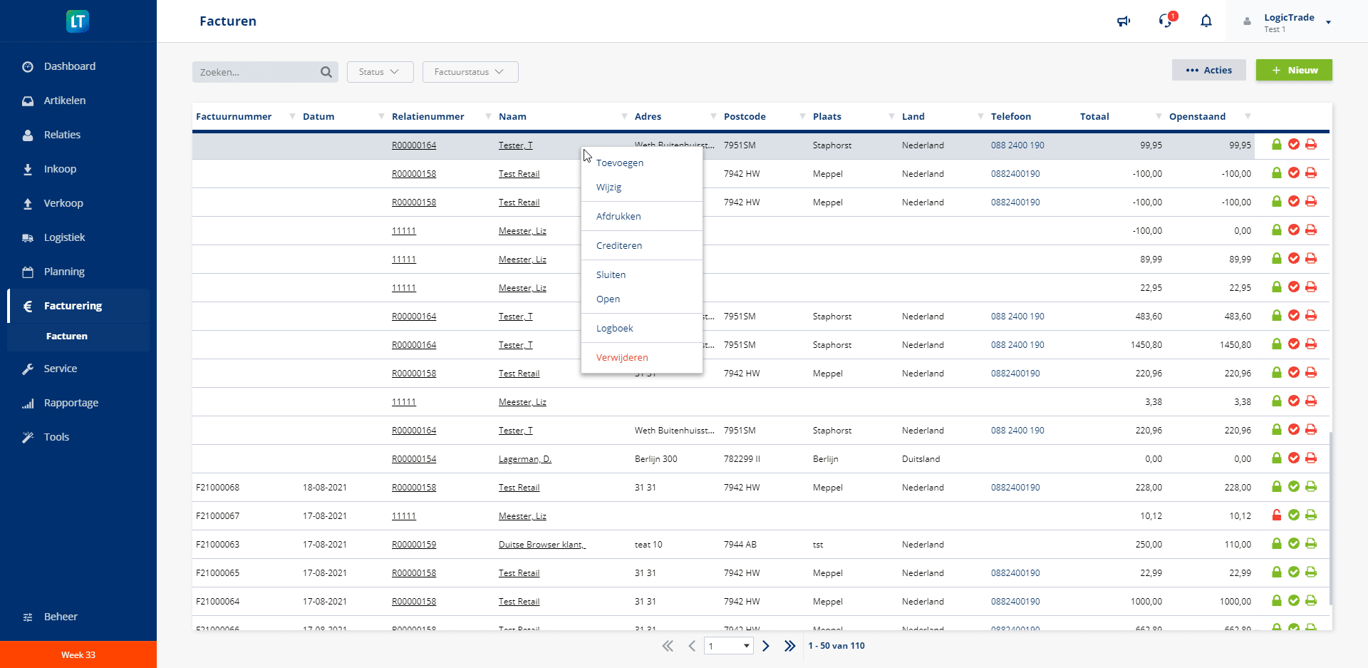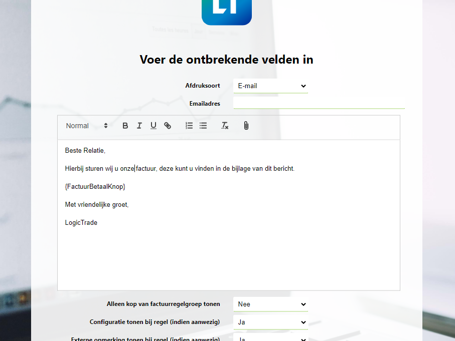 Dat ligt eraan of u een boekhoudkopppeling heeft gekoppeld met LogicTrade