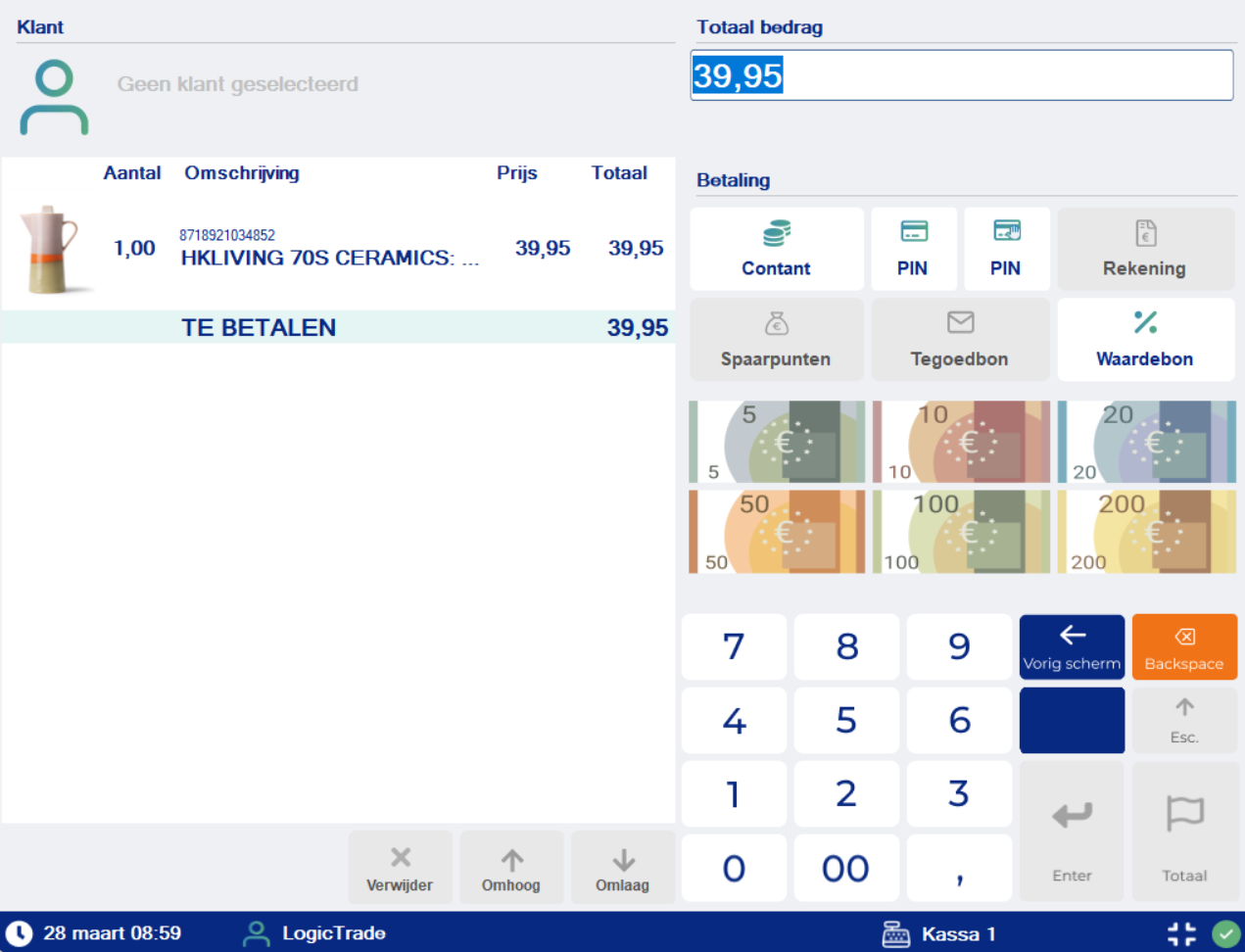 De nieuwe kassa heeft een mooie frisse lay-out gekregen met duidelijke knoppen. We hebben alleen de vormgeving en styling aangepast. Wat betreft functionaliteiten en gedrag is alles exact hetzelfde gebleven.