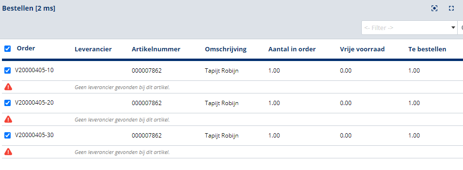 1. Het is nu mogelijk om via Acties>Bestellen te kiezen welke orderregels er besteld moeten worden. Dit werkt door middel van een vinkje voor de desbetreffende orderregel.