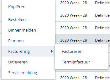 2. Het is nu ook mogelijk om via Acties>Facturering een Termijnfactuur aan te maken.