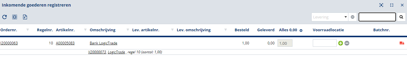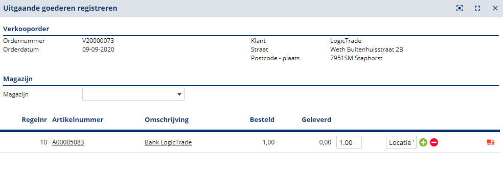 Hetzelfde scherm als wanneer er via Logistiek wordt uitgeleverd komt dan in beeld.
