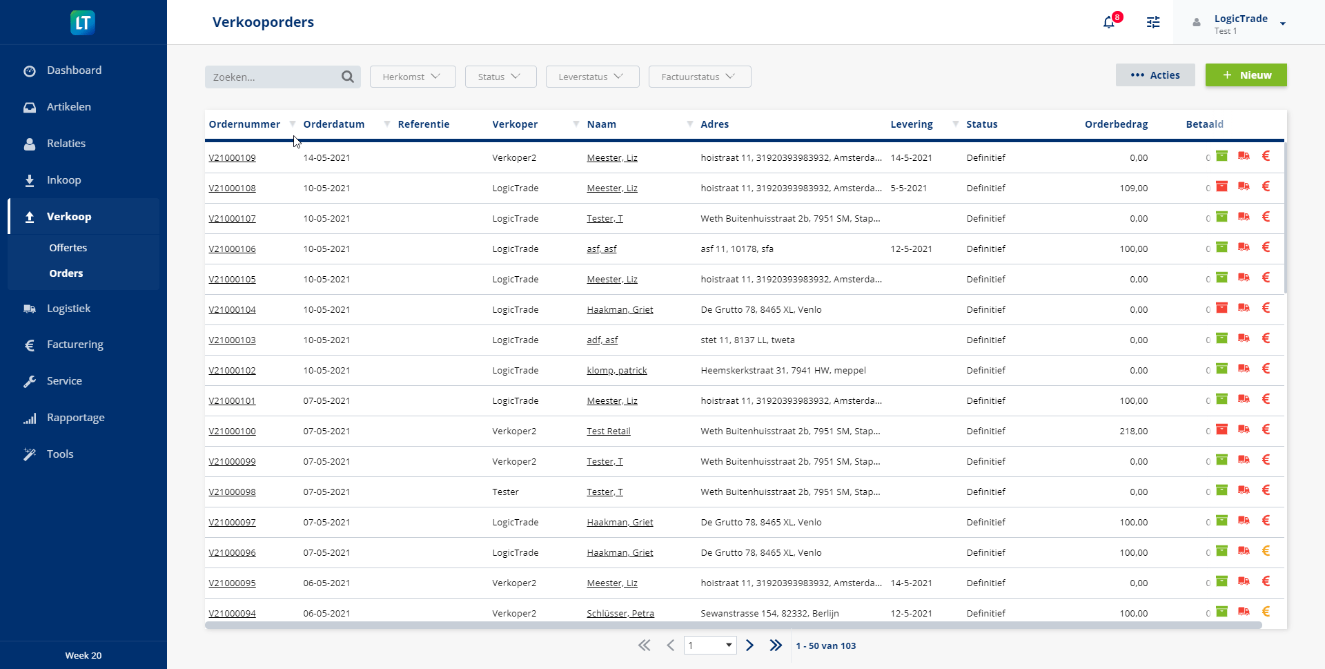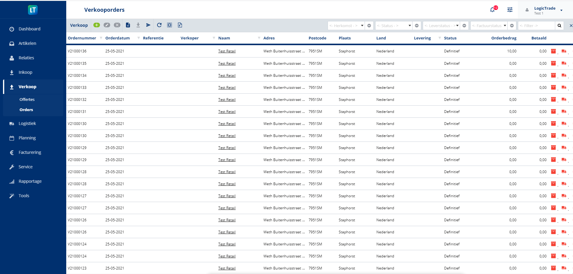 In onze vernieuwde LogicTrade app is het ook mogelijk om alle of meerdere regels te selecteren. U kunt eenvoudig meerdere regels selecteren door het gebruik van 'shift'. Houd 'shift' ingedrukt en klik op de eerste regel die u wilt selecteren. Hierna klikt u op de regel tot waar u wilt selecteren. Alle regels die hiertussen liggen worden nu geselecteerd, u kunt shift nu loslaten. Op deze manier kunt u eenvoudig alle of meerdere regels tegelijk selecteren.