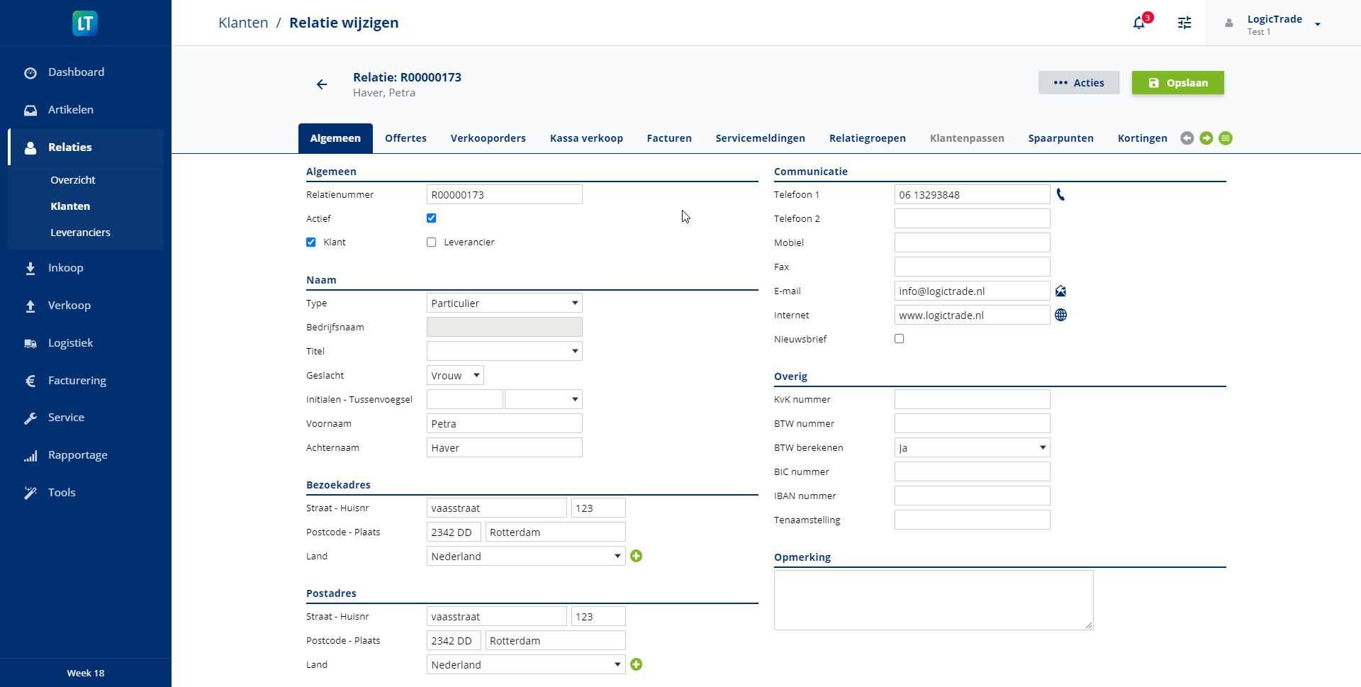 Alle mailadressen in LogicTrade zijn klikbaar als deze zijn opgegeven. U kunt op het icoon achter het veld klikken, zo kunt u gemakkelijk een mail sturen naar uw relaties of leveranciers. Heeft u geen mailadres opgegeven, dan zal het icoon niet zichtbaar zijn. - Alle telefoonnummers klikbaar