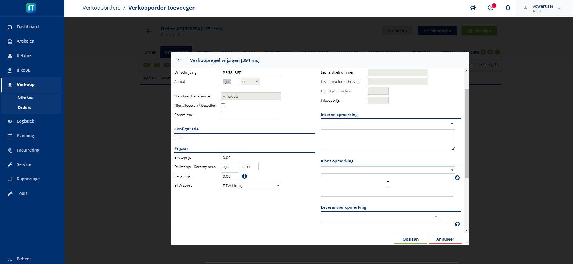 Deze WoonTotaal orderregel moet ook in WoonTotaal verwijderd worden, anders zal de bestelling niet meer kloppen. U kunt dit doen door deze regel te openen (dubbelklik) en dan in WoonTotaal zelf deze regel weg te halen.