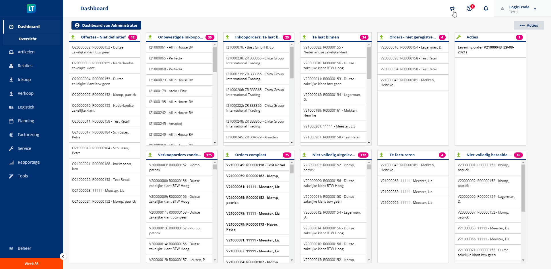 Wanneer er een product update is geweest, krijgt u hier in LogicTrade direct een melding van. U wordt naar de Release Notes op onze kennisbank genavigeerd door op 'release notes' te klikken. Als er een functionaliteit in de release zit die u niet mag missen zullen we deze functionaliteit uitlichten. Als u het 'probeer nu' recht heeft, kunt u direct aan de slag met de nieuwste functionaliteiten. Lees hier hoe u het 'probeer nu' recht in kunt stellen.