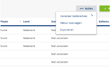 - U kunt nu zien dat het besteladvies gegenereerd wordt