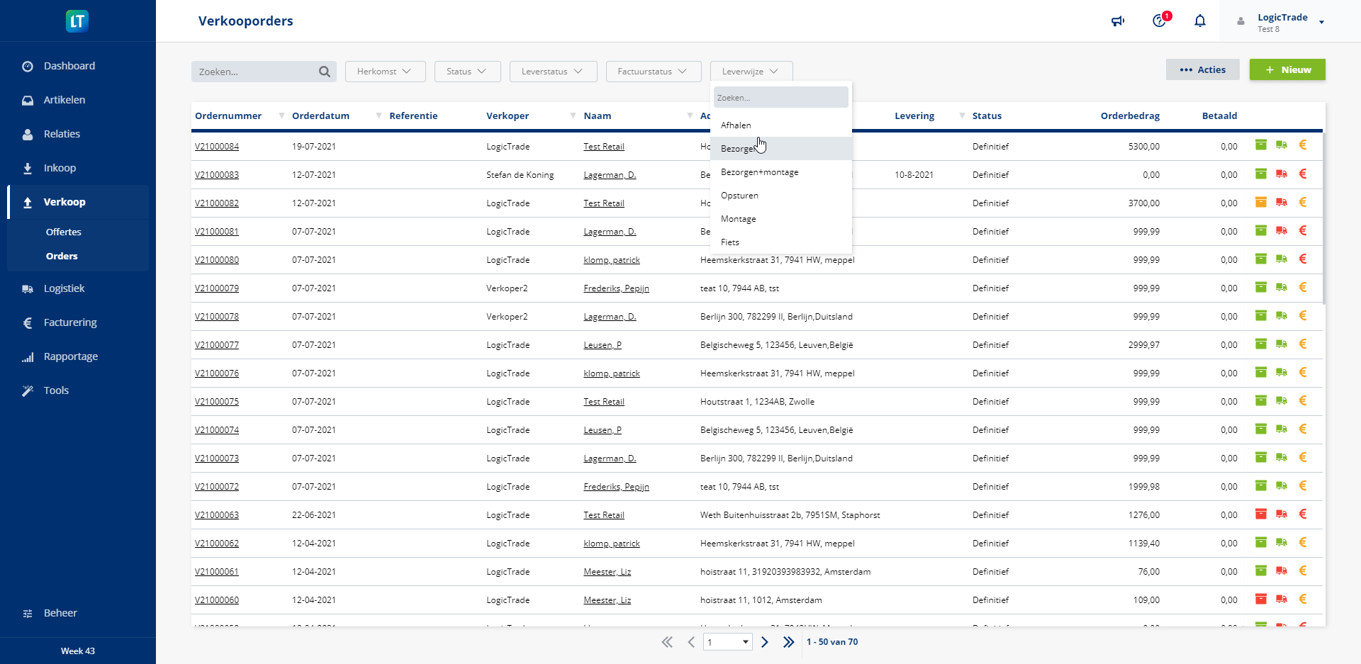U heeft nu de mogelijkheid om uw verkooporders te filteren op leverwijze.