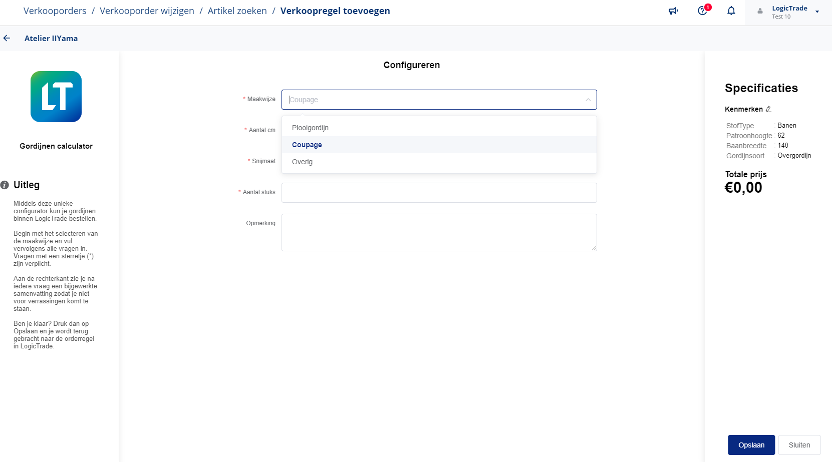 U kunt nu werken met de vernieuwde gordijncalculator. Er zijn vele verbeteringen geweest aan de gordijncalculator, waaronder het toevoegen van een coupage order.