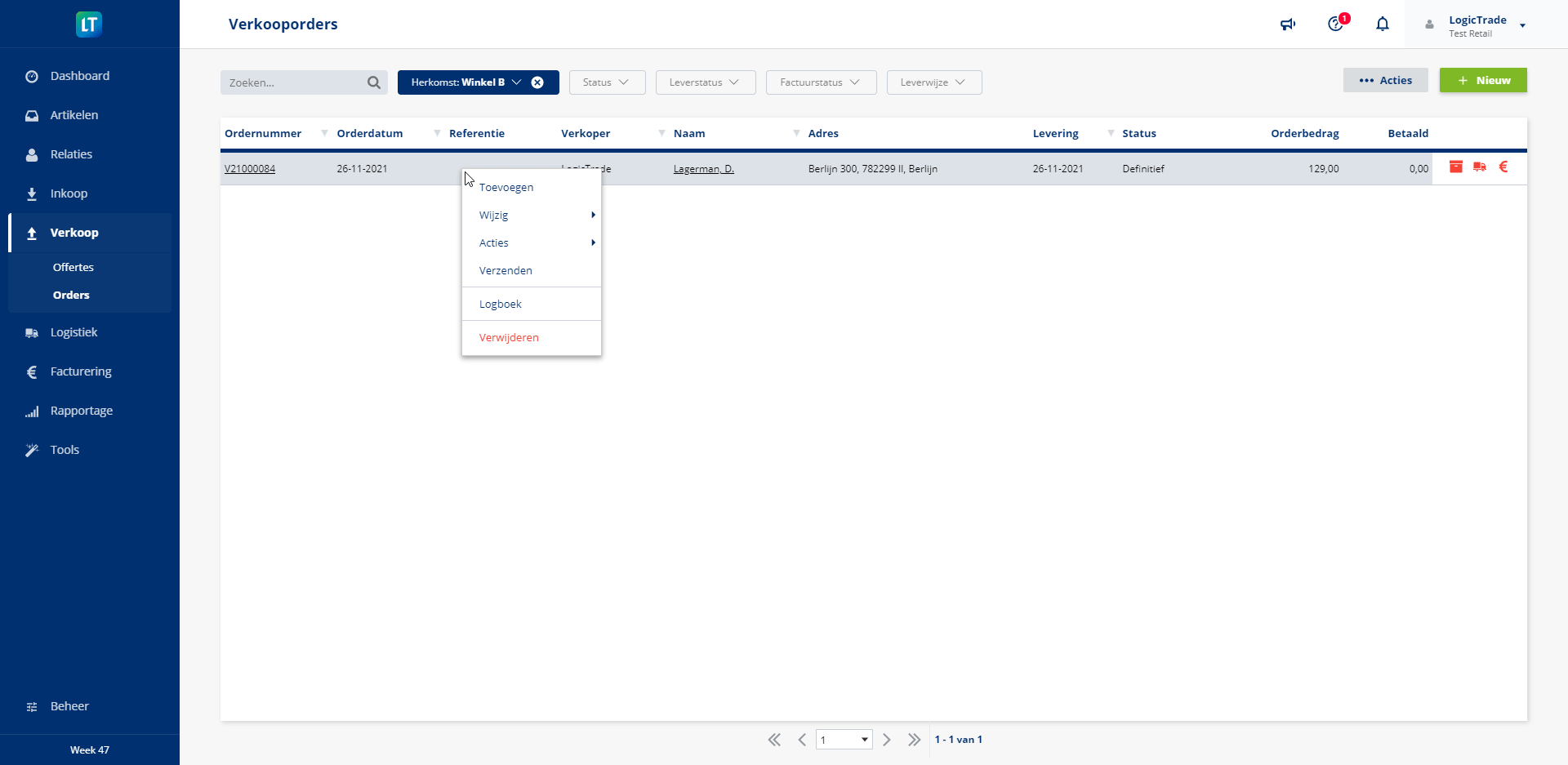 Het is nu mogelijk om een termijnfactuur te crediteren in LogicTrade. Voor deze update ondersteunde LogicTrade het crediteren van een termijnfactuur niet. U kreeg de melding dat het niet mogelijk was om een termijnfacuur te crediteren.