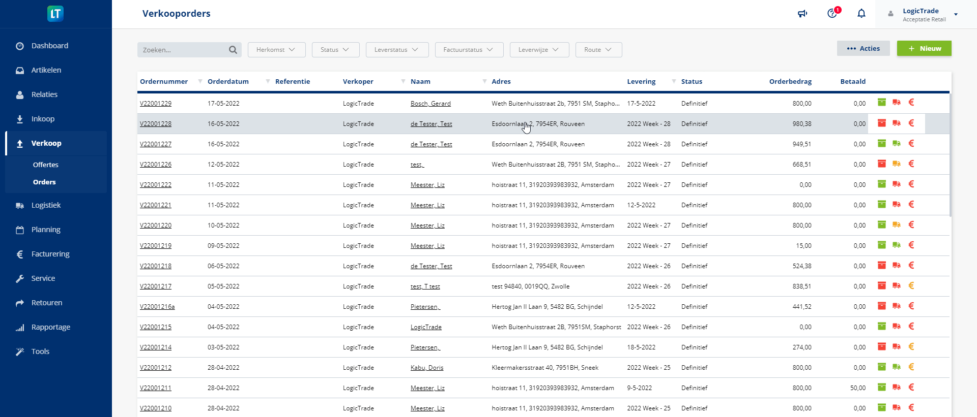 Je kan nu de route van meerdere orders tegelijk wijzigen. Je kan de route door de orders te selecteren --> rechtermuis klik --> selectie wijzigen.
