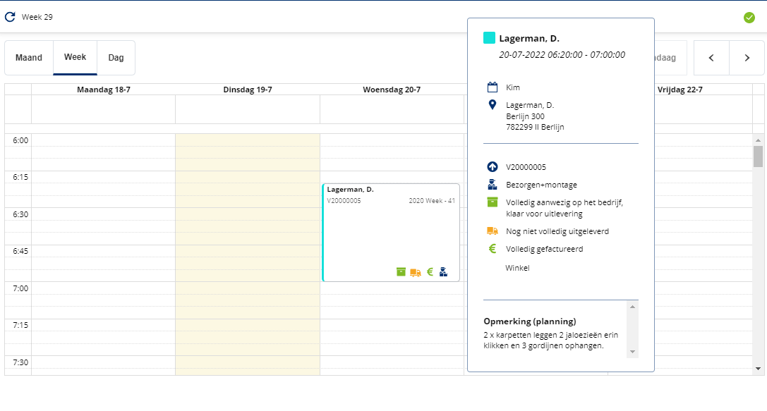 De opmerking wordt weer getoond als je met de muis op de planafspraak gaat staan.