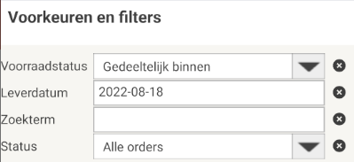 Je kan nu in de StoreAssist ook filteren op de voorraadstatus. Deze statussen zijn hetzelfde als in LogicTrade. Je kan nu filteren op: nog niets binnen, gedeeltelijk binnen en volledig binnen.