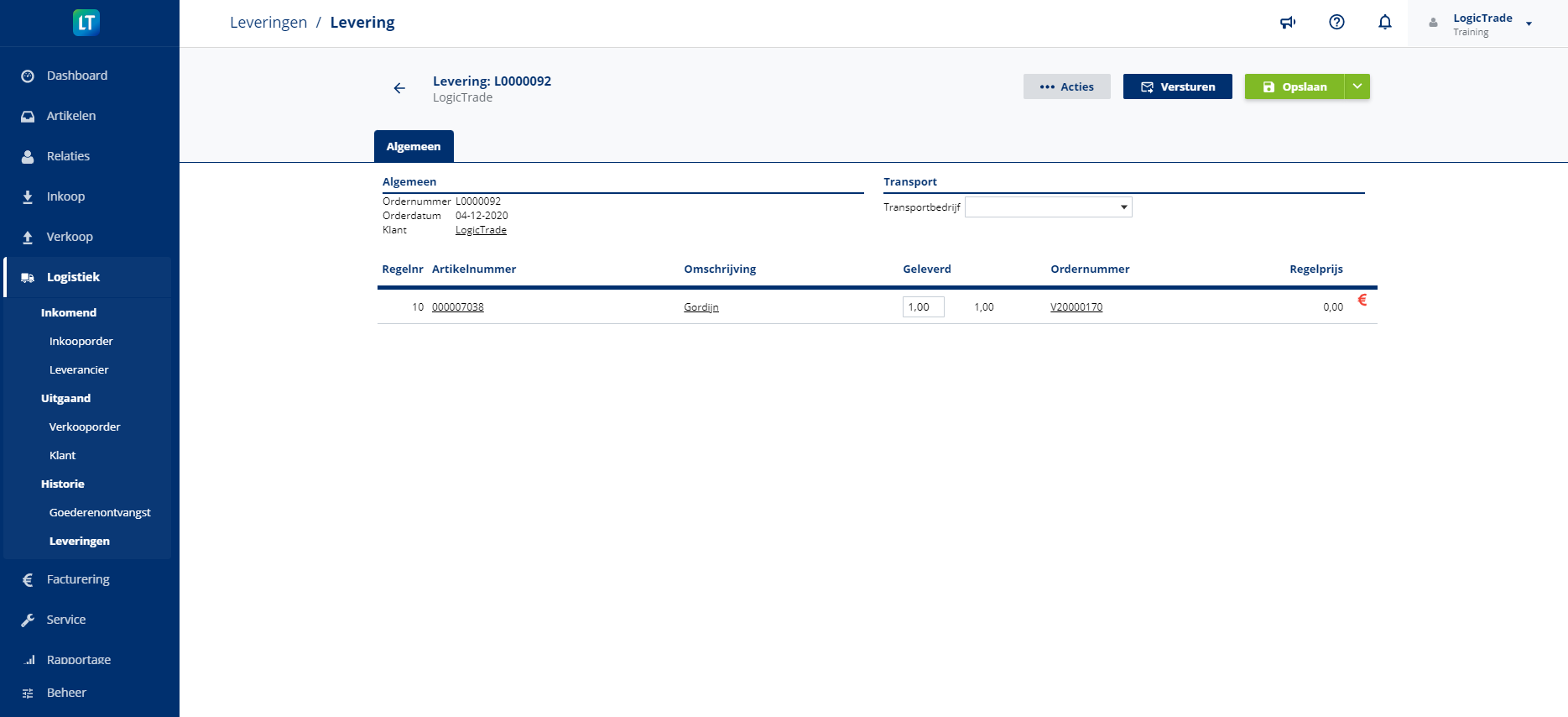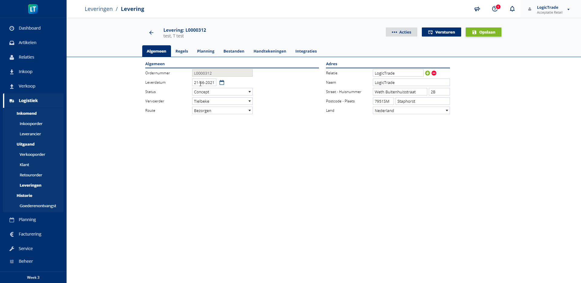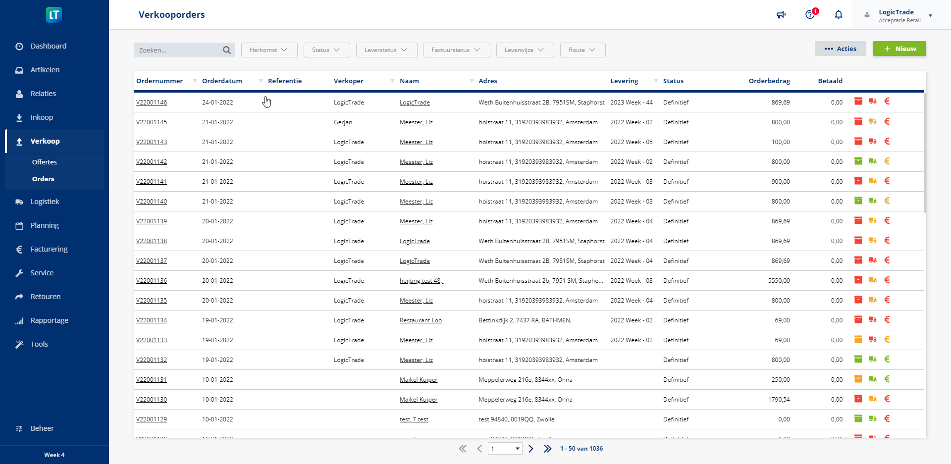 De manier van leveren is vernieuwd in LogicTrade! Deze vernieuwde manier, zorgt voor verschillende voordelen. U kunt nu eenvoudig een deellevering aanmaken, u selecteert voor deze levering eenvoudig alle regels die voorradig zijn. Als u een deellevering uitlevert, kleurt de vrachtwagen bij de order oranje. Een oranje vrachtbwagen betekent dat de order nog niet volledig is uitgeleverd. Op deze manier heeft u een nog duidelijker overzicht van de leverstatus. Naast het aanmaken van een deellevering kunt u ook meerdere orders bundelen in één levering, mits de orders voor dezelfde relatie zijn.