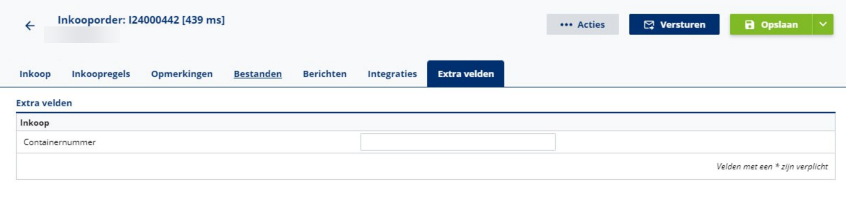 Het is nu mogelijk om Extra velden (voorheen Algemene kenmerken) ook bij een inkooporder in te vullen. Dit kan enorm handig zijn als je toch nog extra data kwijt wil bij een inkooporder.