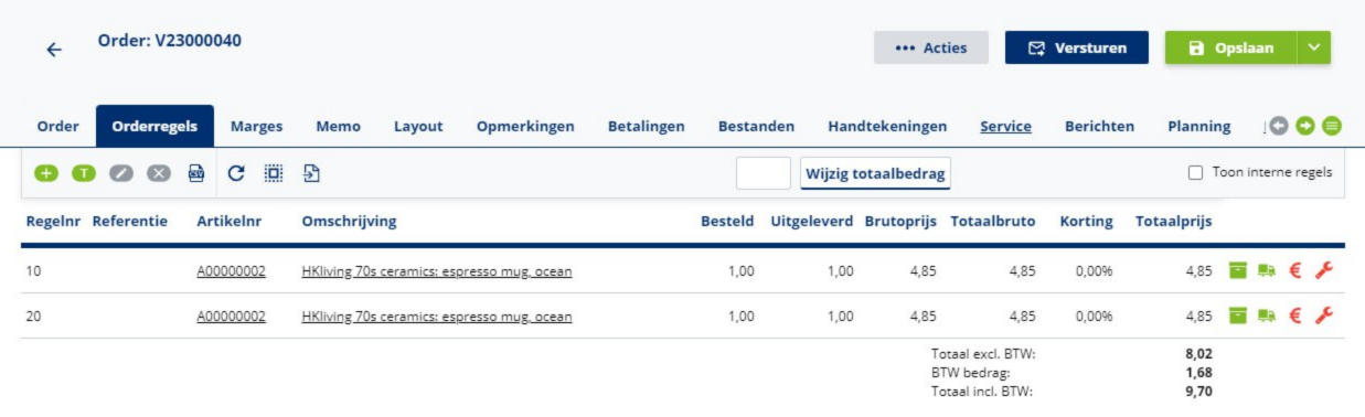 Het is al langer mogelijk om bij een verkooporder te zien of hier een servicemelding aan vastzit of niet. Dit is te herkennen aan het servicemelding icoontje (moersleutel). We hebben deze functionaliteit nu ook naar de orderregels gebracht, net zo handig!