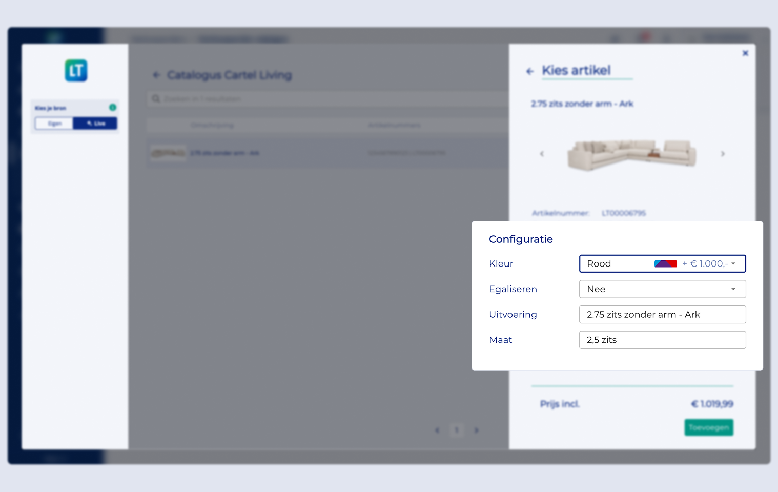 Live configurator: Meubels van Cartel Living configureren in de catalogusmodule