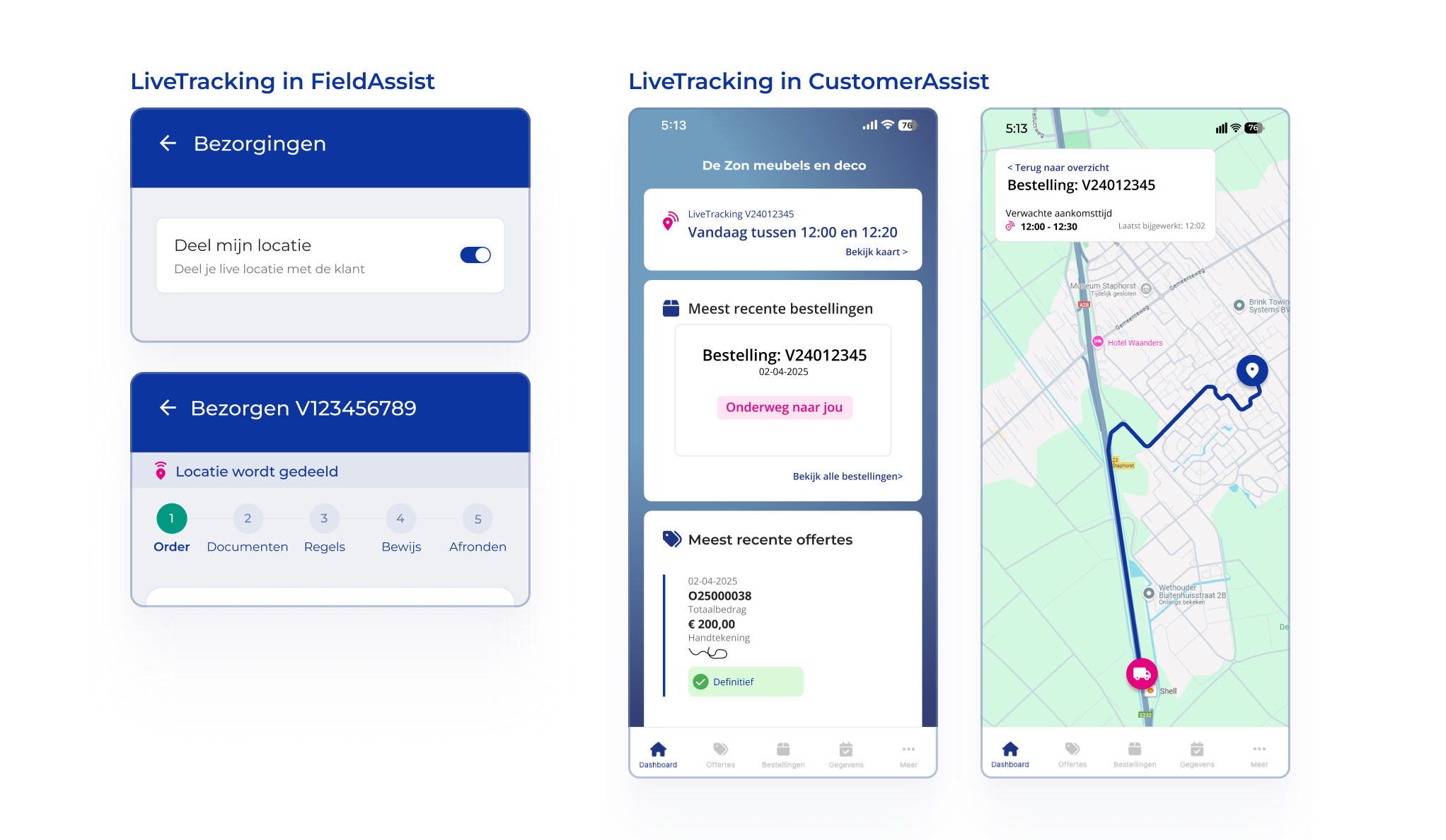 Bezorgers kunnen LiveTracking aanzetten zodat klanten hun aankomst kunnen volgen.