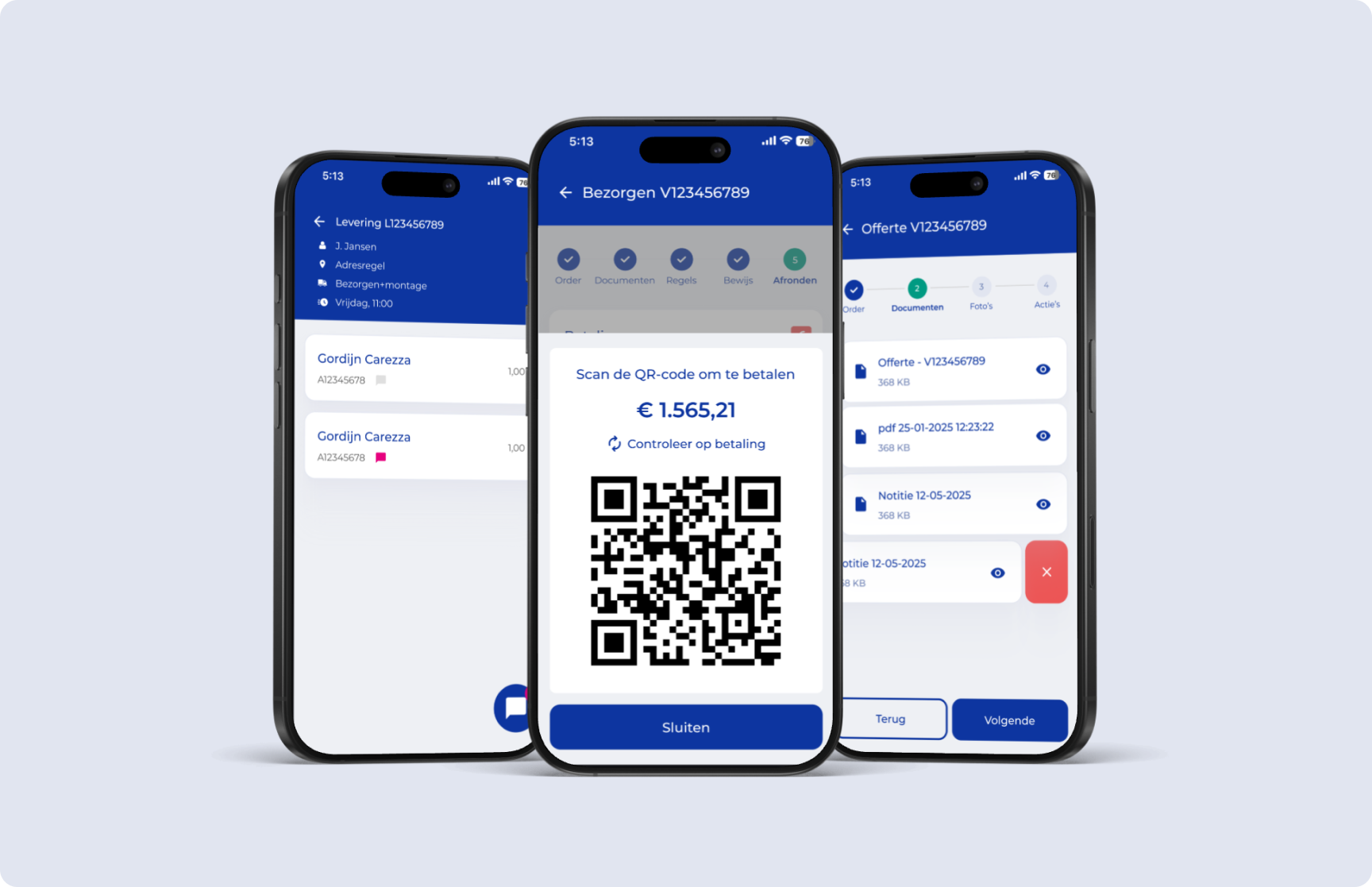 Bij het afleveren van producten kun je nu meteen een betaling starten via een QR-code. Zodra de klant betaalt, zie je dit live terug in de app. Je hoeft dus niet te wachten of achteraf iets te verwerken. De betaling staat vervolgens ook genoteerd bij de verkooporder onder het tabblad "betalingen".