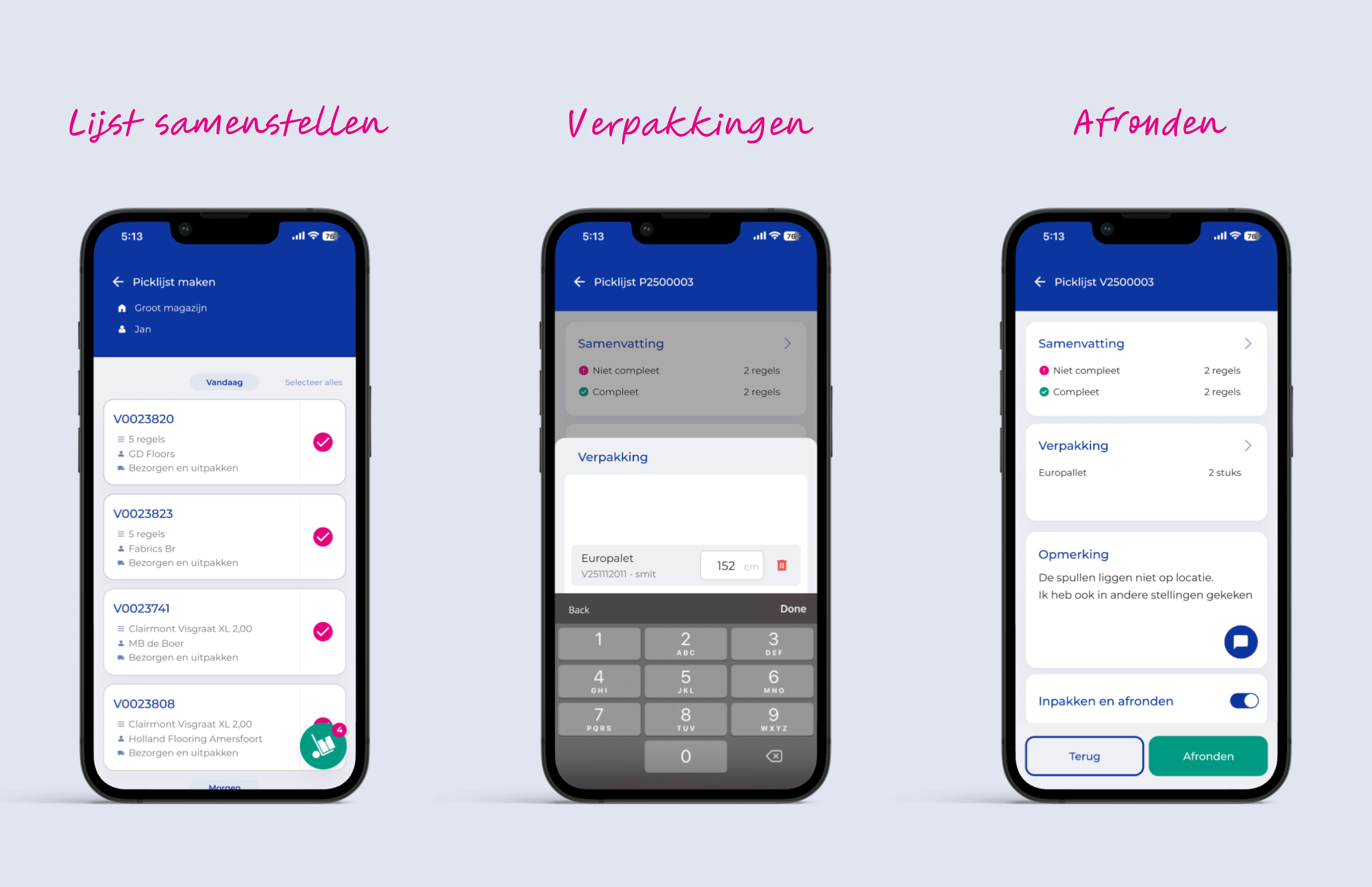De app is beschikbaar voor testgebruik. Nieuwe functies zoals batchnummer-aanpassing en pickprioriteit zijn nog in ontwikkeling. Er wordt actief doorgebouwd op basis van feedback.