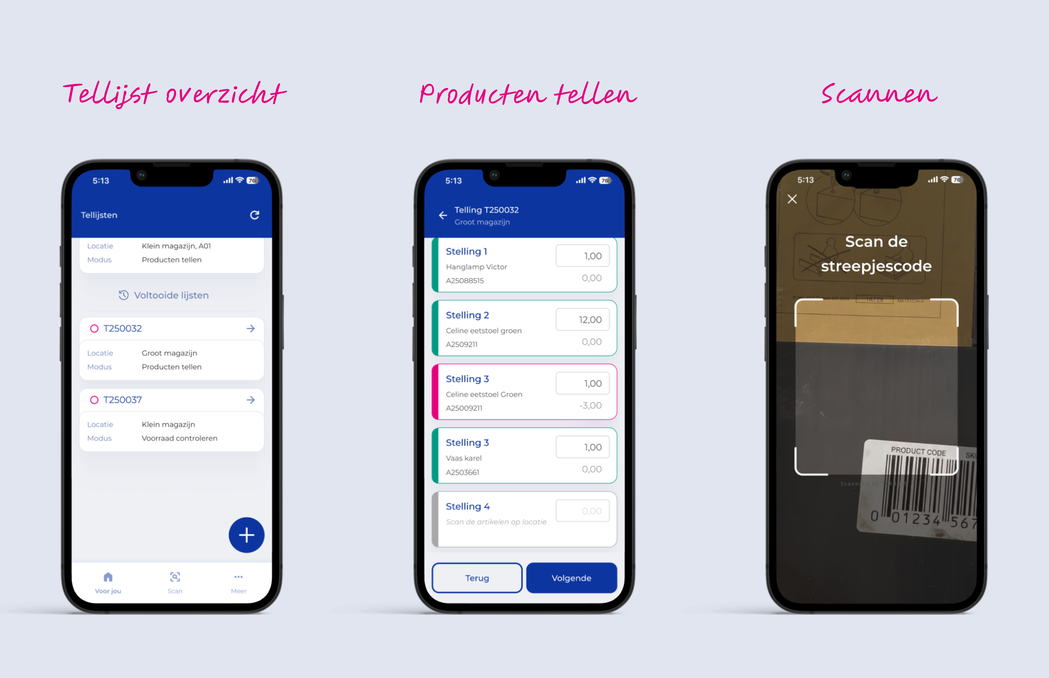 StoreAssist ondersteunt drie manieren van tellen van je inventaris: