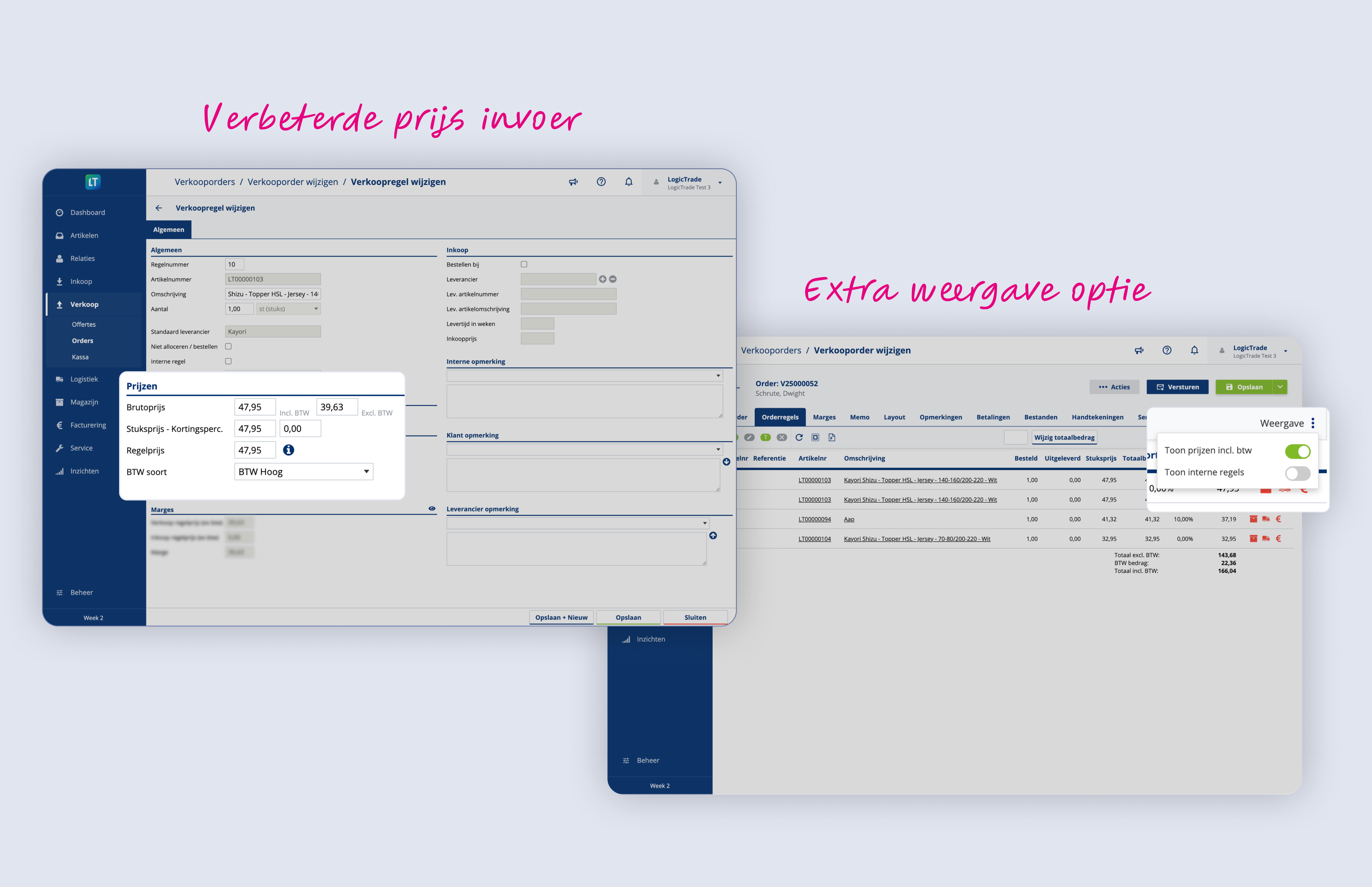 Het werken met BTW is nu flexibeler en duidelijker, zowel bij invoer als in de weergave van orders, offertes en facturen.