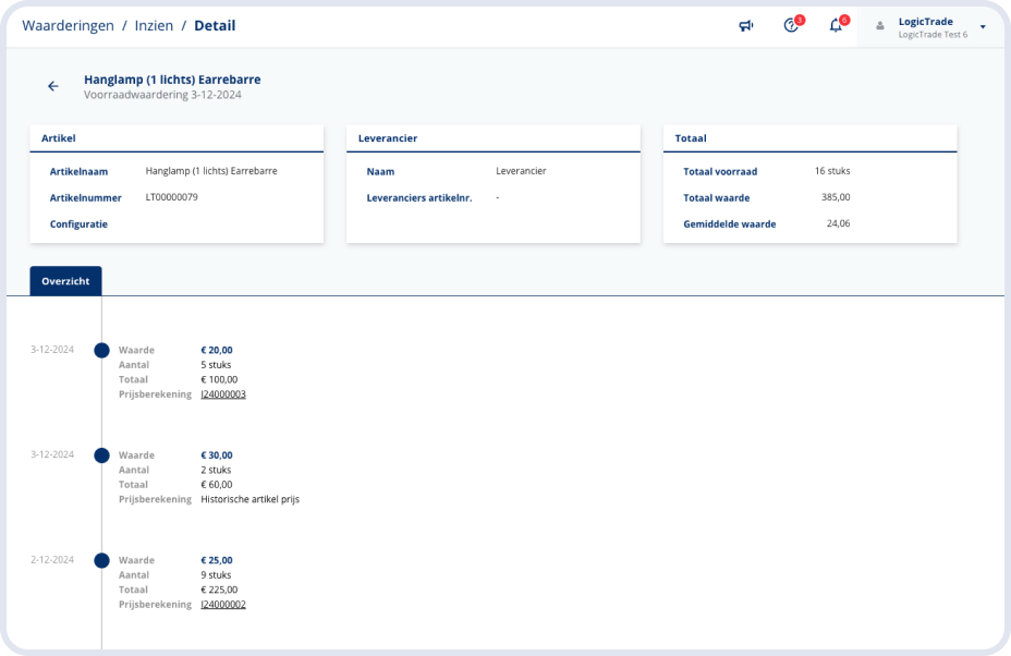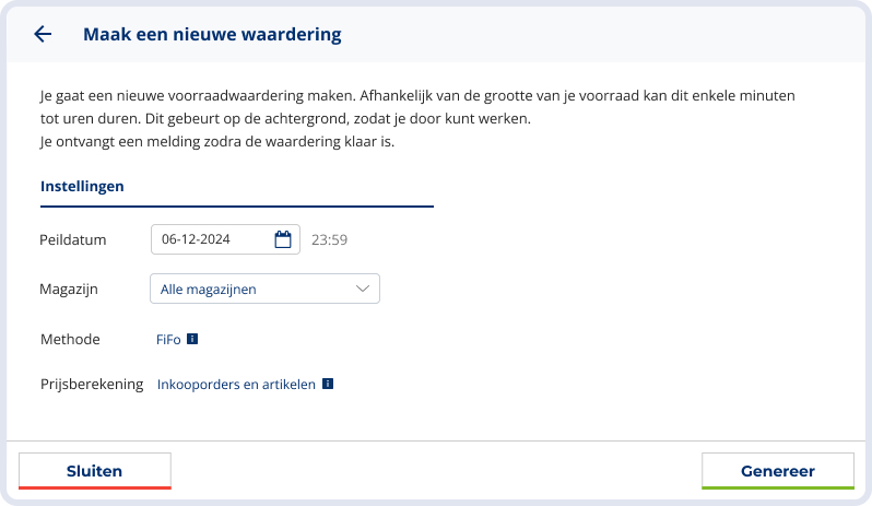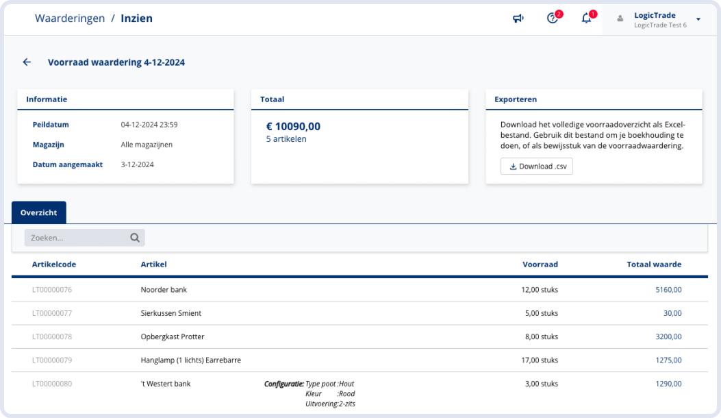 Zodra er een voorraadwaardering gemaakt is, kan je deze inzien.