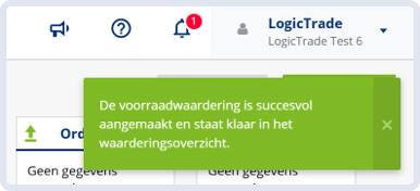 - Zolang LogicTrade nog bezig is met het bepalen van de juiste voorraadwaarde is er een icoon van een klokje te zien. Op het moment dat alle gegevens verzameld zijn en het overzicht is gemaakt, krijg je hier een melding van